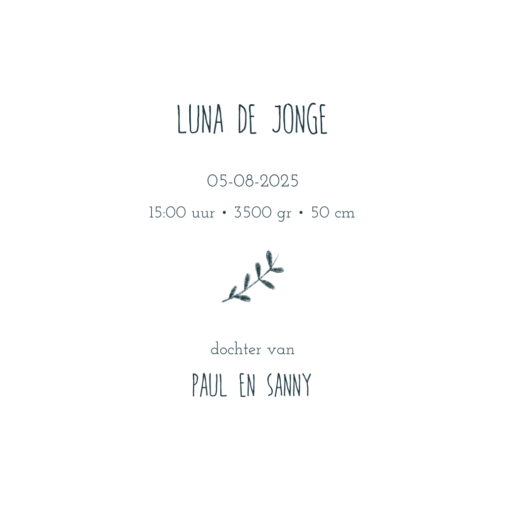 . Wat een origineel geboortekaartje met een maan en silhouetten van takjes! Tof hierbij is de donkere achtergrond. Hoe heet jouw kleine meid?