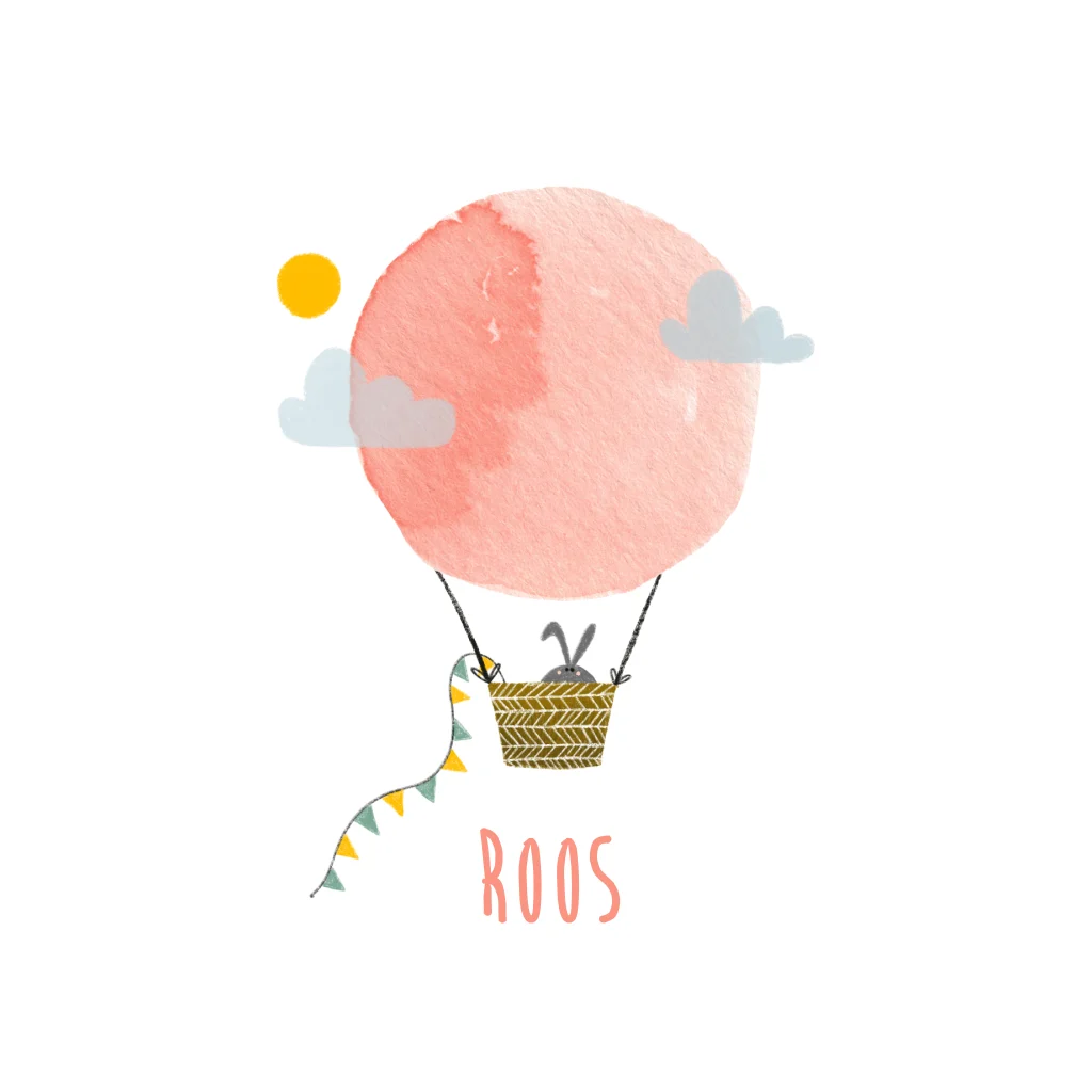Een lieve sluitsticker met een roze luchtballon in een zachte roze kleur. Aan de luchtballon hangen slingers. De sluitsticker past bij het geboortekaartje van Bladergoud. Laat het geboortekaartje en sluitsticker samenkomen tot de leukste geboorte aankondiging.