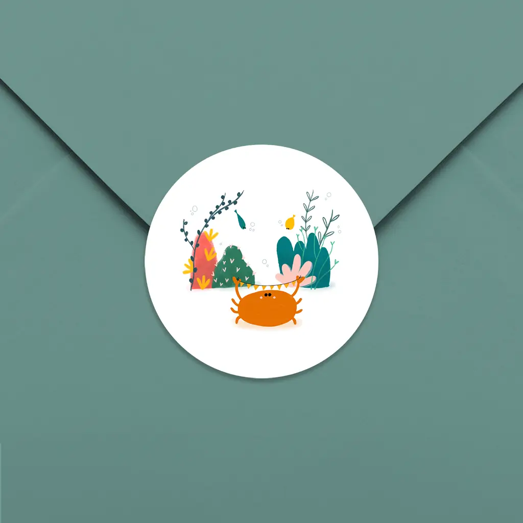 Sluitsticker met onderwaterwereld en een krab - per 25 stuks