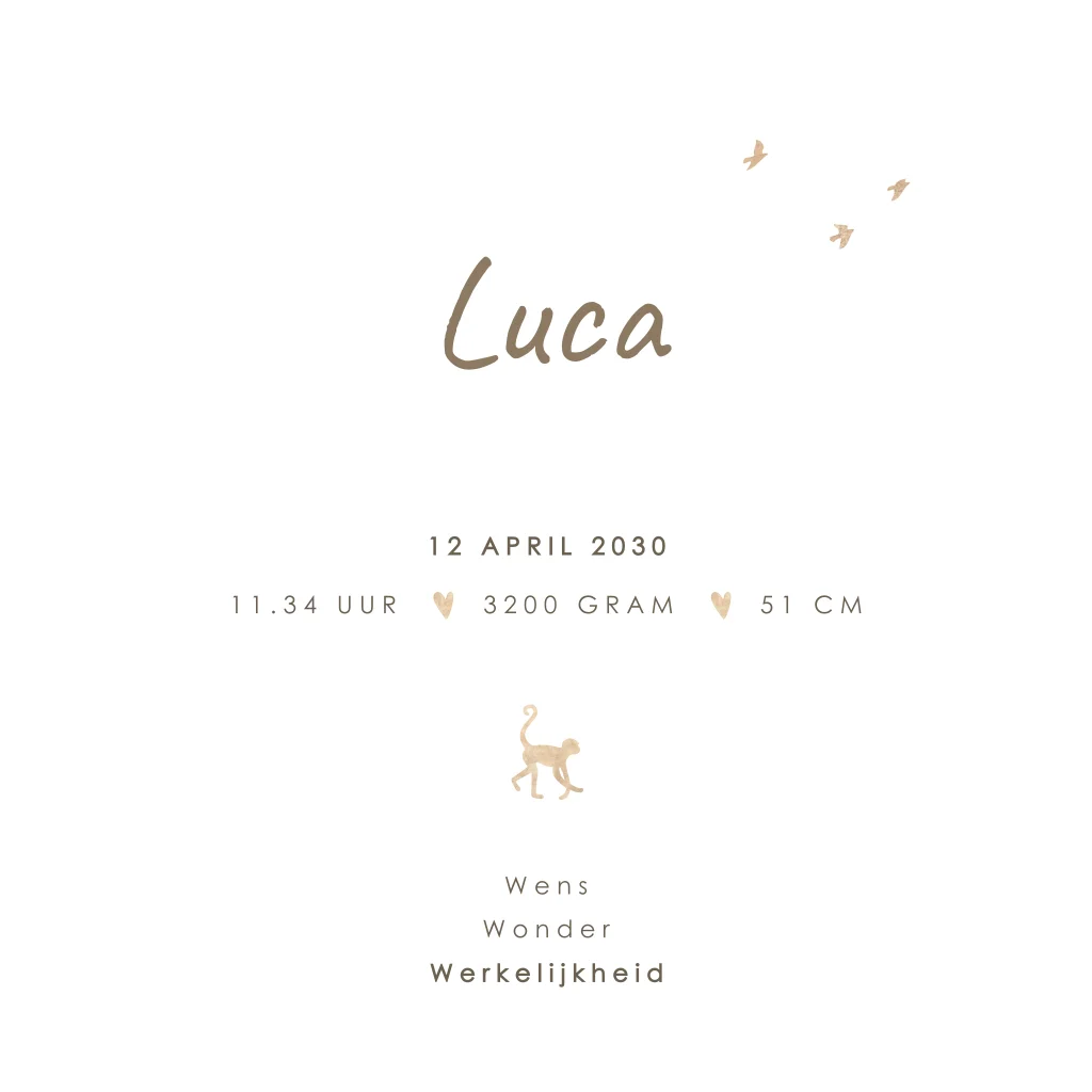 Stijlvol beige geboortekaartje met silhouetje en jungledieren