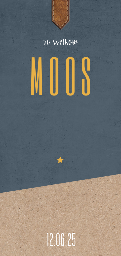 Hip geboortekaartje voor je pasgeboren zoontje. Met kraftpapier-look achtergrond gecombineerd met donkerblauw en een sterretje is dit echt een stoer jongens geboortekaartje!