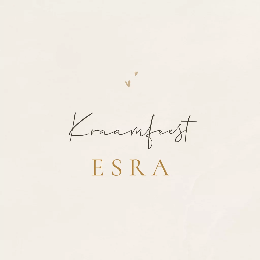 Een lieve kraamborrel uitnodiging met zachte kleuren en hartjes. De uitnodiging is te personaliseren in onze online editor.