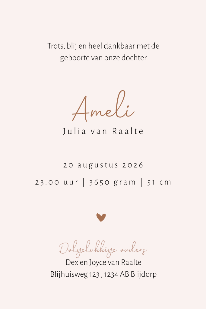 Plaats zelf de teksten en elementen eenvoudig op de juiste plek in onze opmaaktool. Heb je hier hulp bij nodig? Neem gerust even contact met ons op!