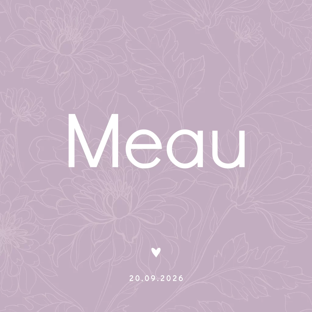 Dit is een trendy minimalistisch geboortekaartje voor jullie dochter. Het kaartje heeft een paarse achtergrond met de lichte lijntekening van een bloemenpatroon. De goudfolie typografie geeft dit kaartje een luxe uitstraling. Pas het kaartje naar wens aan in onze online editor en bestel snel een proefdruk om dit kaartje in het echt te zien!