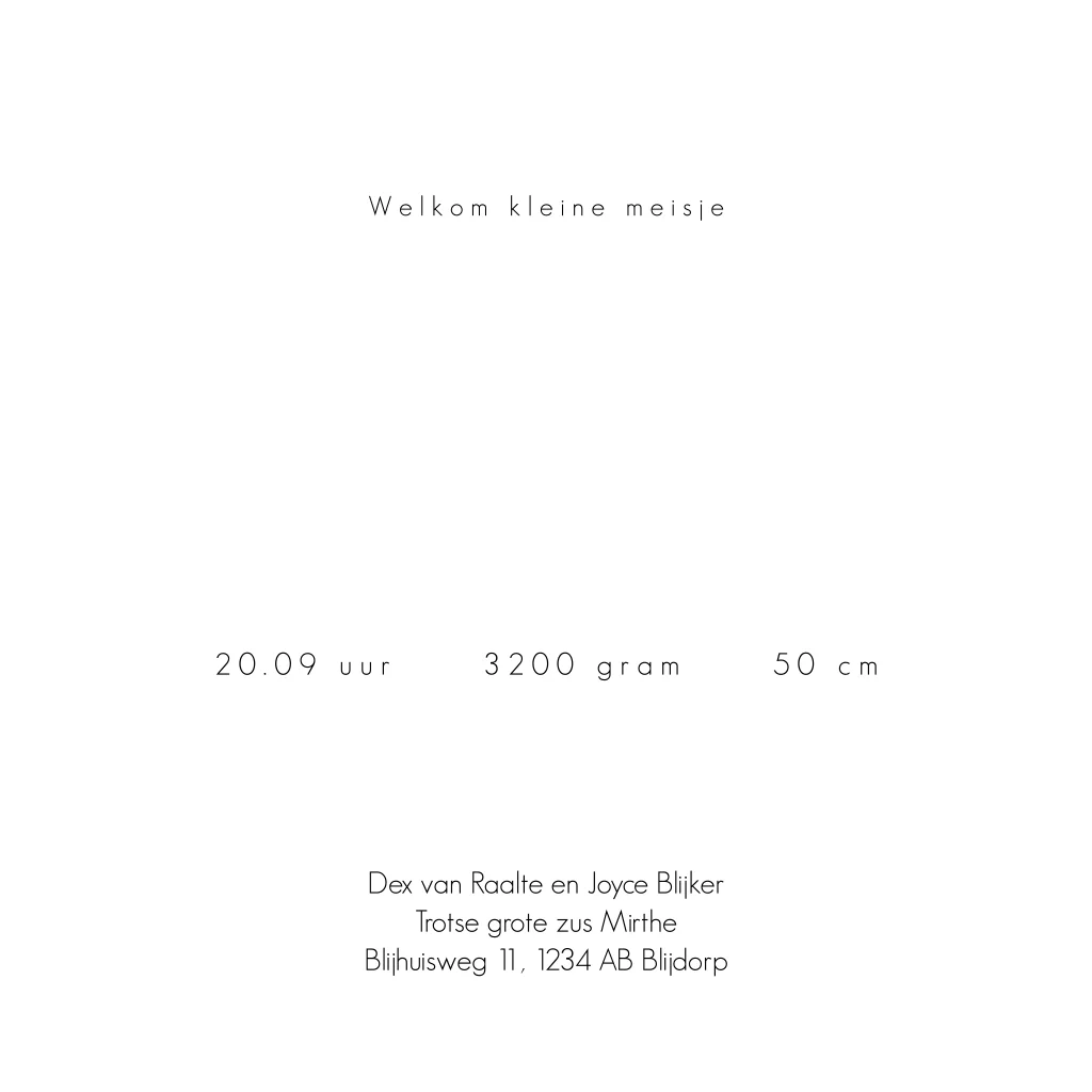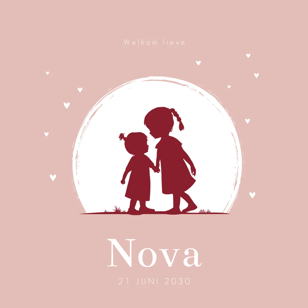 Kondig de geboorte van jullie dochter en zusje aan met dit lieve kaartje! Het kaartje heeft een roze achtergrond. Een grote zus houdt het handje van haar kleine zusje vast. De goudfolie opdruk geeft dit kaartje een luxe uitstraling. Pas het kaartje naar wens aan in onze online editor.Plaats zelf de teksten en elementen eenvoudig op de juiste plek in onze opmaaktool. Heb je hier hulp bij nodig? Neem gerust even contact met ons op!