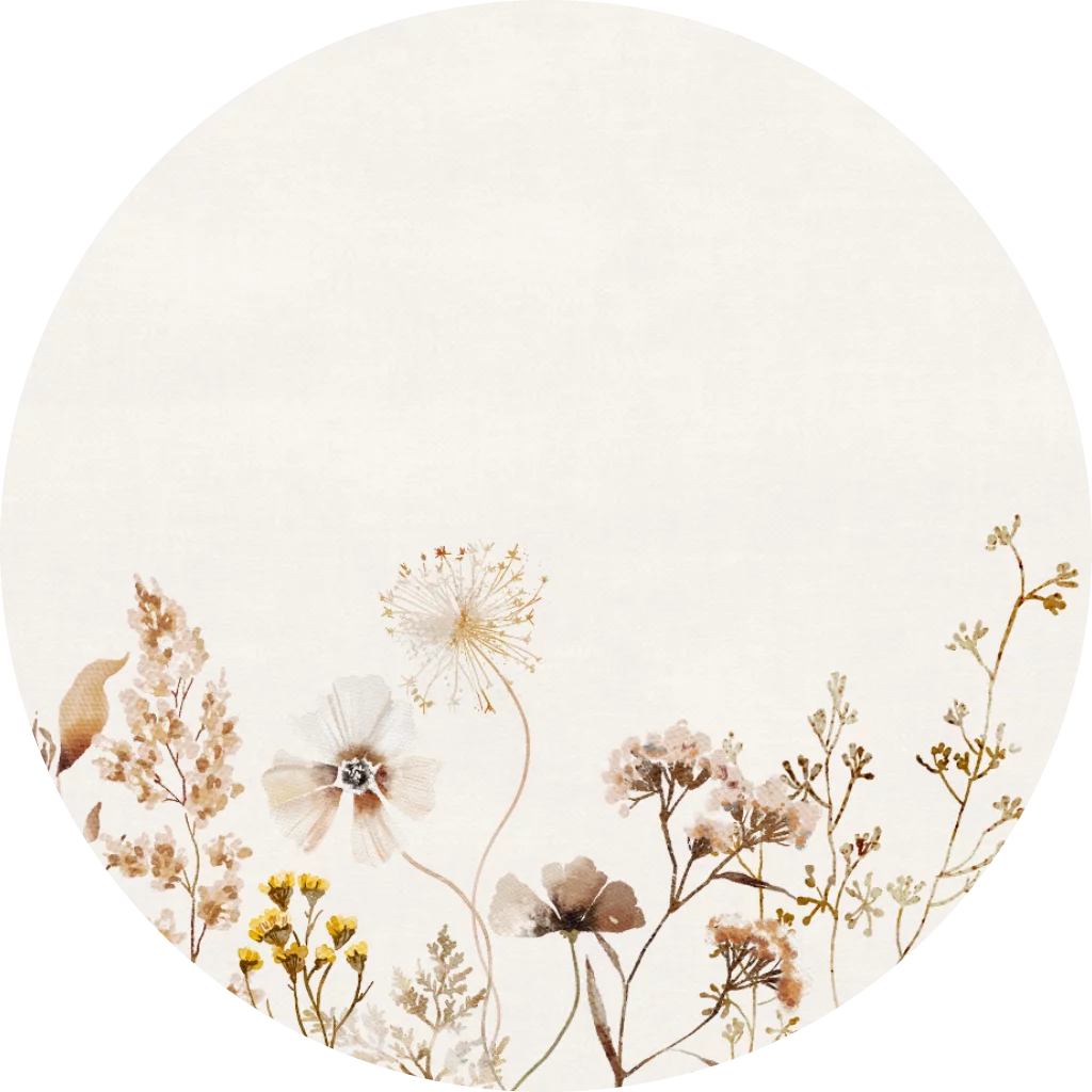 Een lieve beige sluitsticker passend bij het geboortekaartje. De sticker heeft een beige achtergrond met daarop bruine veldbloemen. Pas het ontwerp naar wens aan in onze online editor.