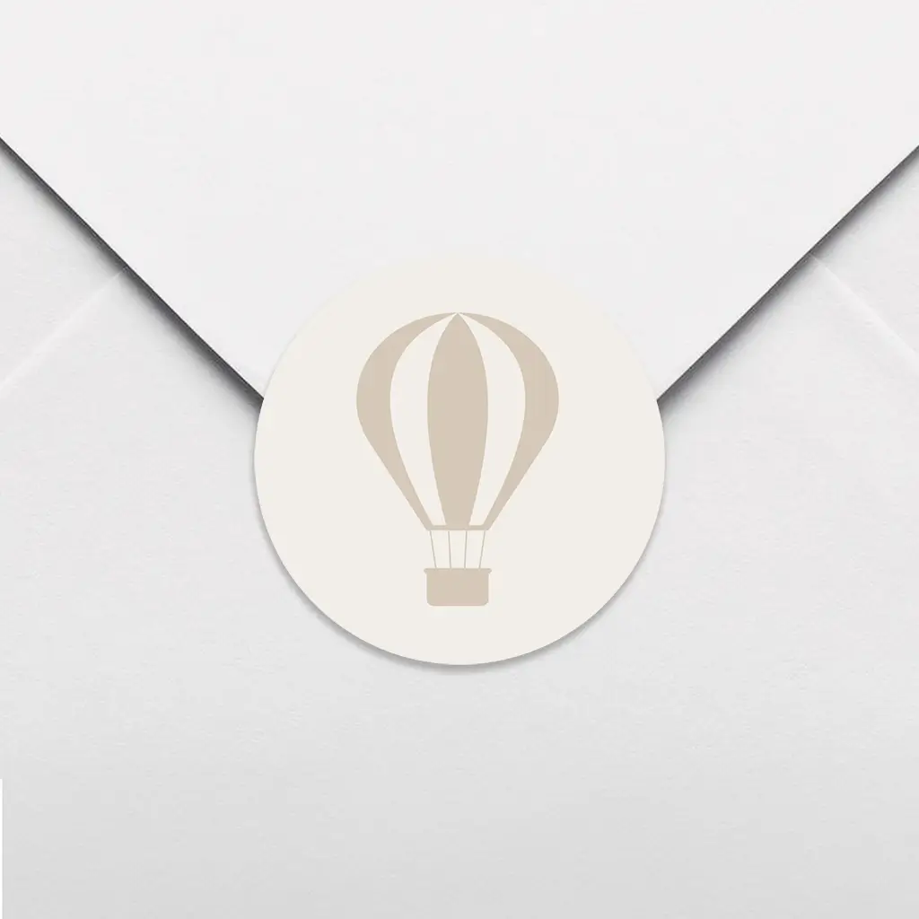 Een schattige sluitsticker passend bij het geboortekaartje voor jouw kindje. De sticker heeft een beige achtergrond met daarop een lieve luchtballon. De sluitstickers hebben een diameter van 35 mm en worden geleverd op vellen van 25 stuks.