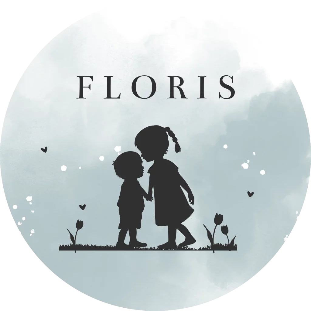 Sluitsticker met blauwe watercolour en silhouetjes zus en broertje