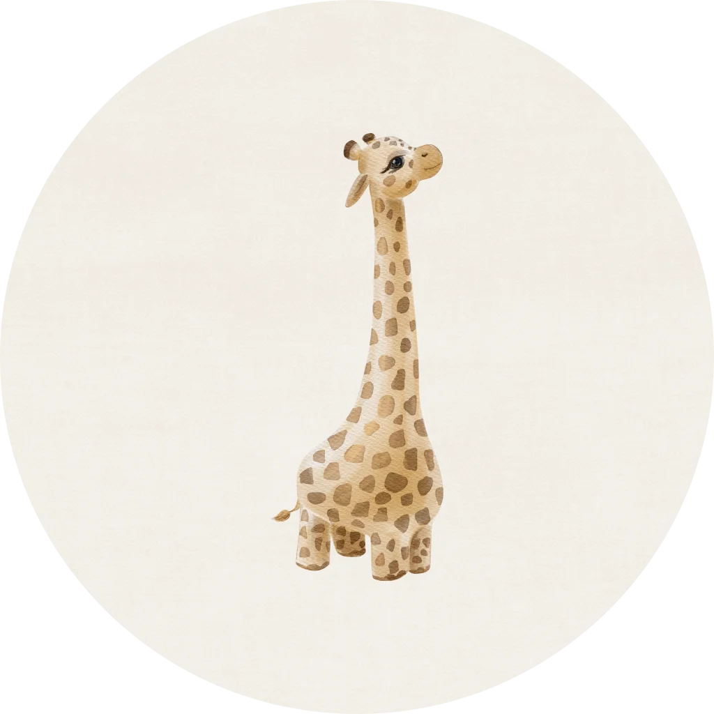 Het versturen van de geboortekaartjes wordt een feestje met deze sluitstickers. De stickers hebben een beige achtergrond met de illustratie van een giraffe. De stickers zijn naar wens aan te passen in onze online editor.
