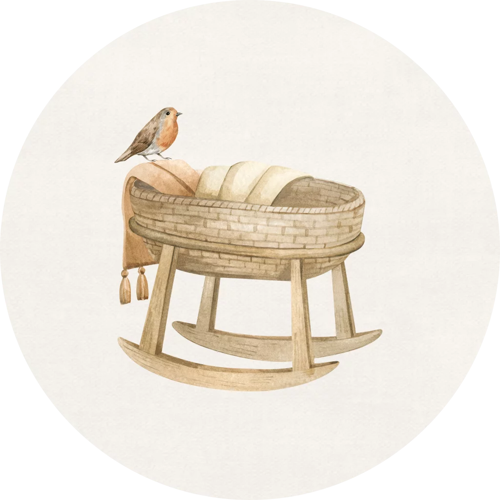 Dit is een mooie sluitsticker om de enveloppen mee dicht te plakken. Op de sticker staat de illustratie van een wiegje met vogel. De sticker is naar wens aan te passen in onze online editor.