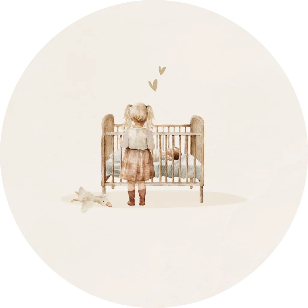 Sluitsticker met illustratie wiegje en grote zus