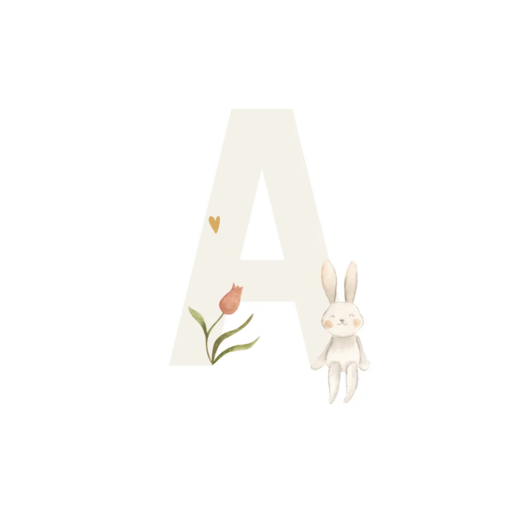 Het versturen van de geboortekaartjes wordt een feestje met deze sluitsticker! Op de sticker zie je een initiaal, bloem en konijn. De sticker kan naar wens aangepast worden in onze online editor.