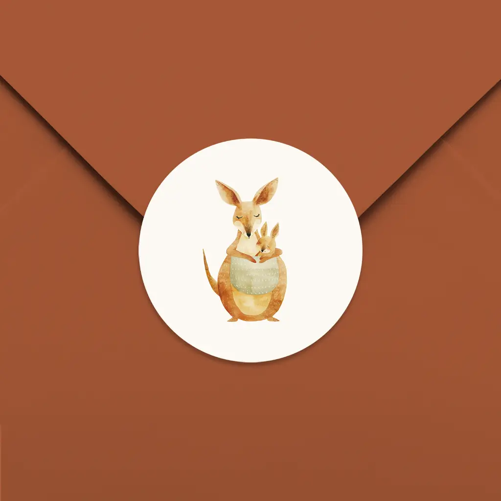 Lieve sluitsticker voor jullie kindje. Op de sticker staat een moeder kangoeroe met haar kleintje. Perfect voor op de envelop van jullie geboorteaankondiging. In onze online editor kan je de sluitsticker geheel naar wens aanpassen.
