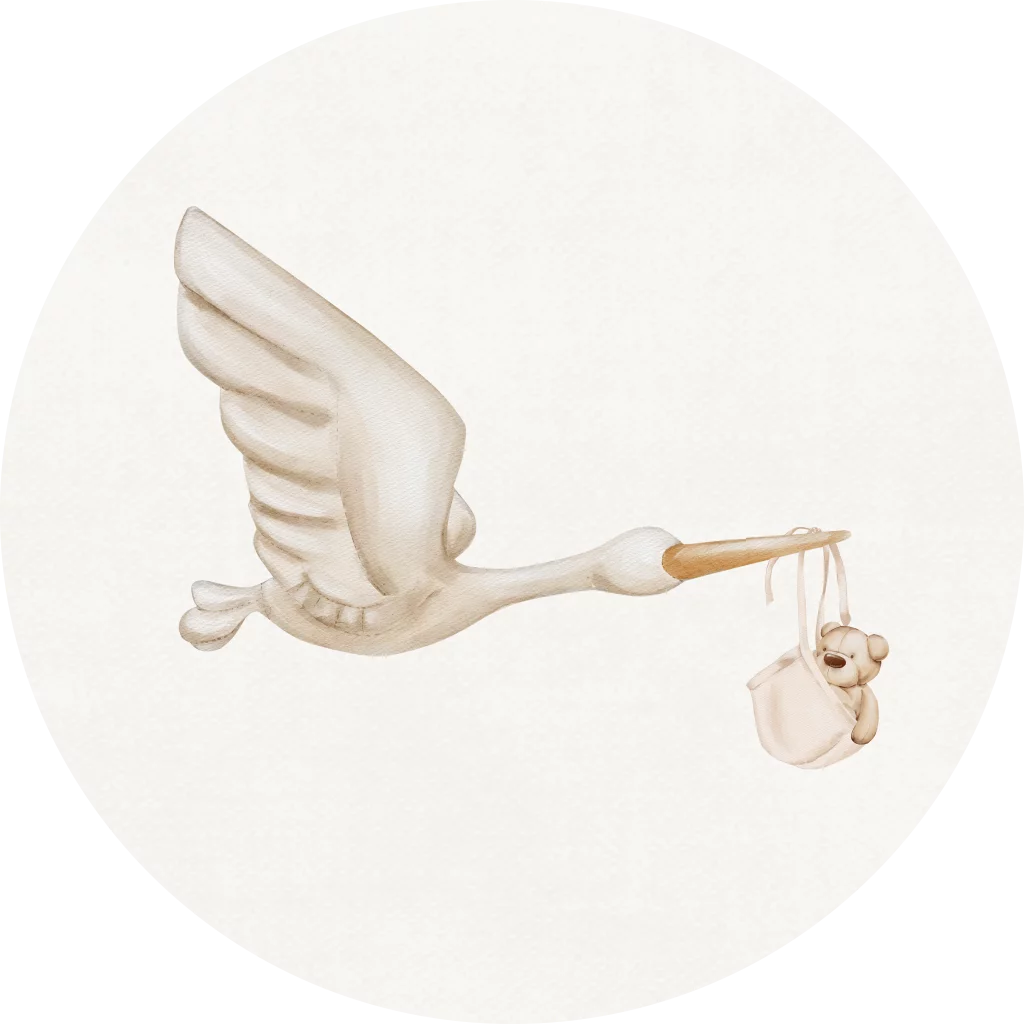 Het versturen van de geboortekaartjes wordt een feestje met deze sluitsticker. Op de sluitsticker is een ooievaar met beertje te zien. De sluitsticker kan volledig naar wens aangepast worden in onze online editor.