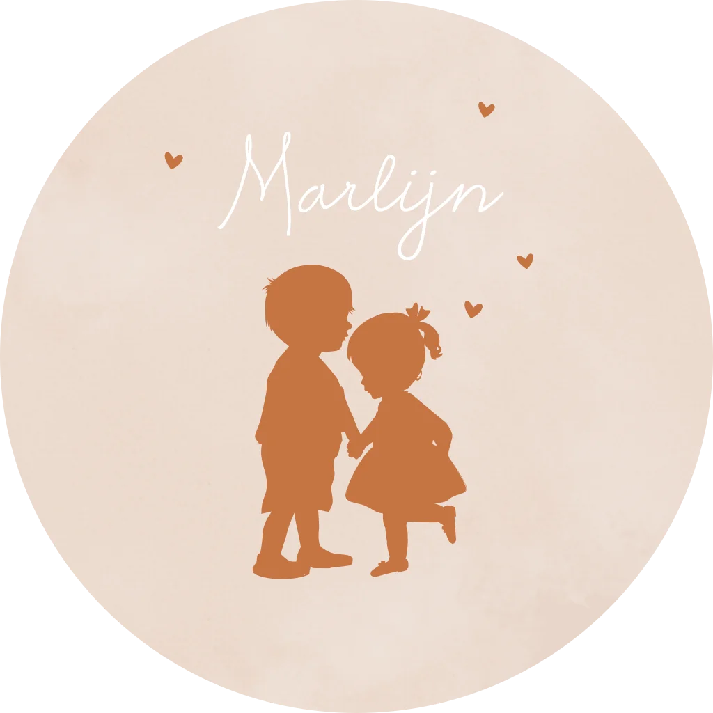Een lieve sluitsticker voor het geboortekaartje van jouw meisje. De sticker heeft een zacht roze achtergrond en koperkleurige silhouetjes.