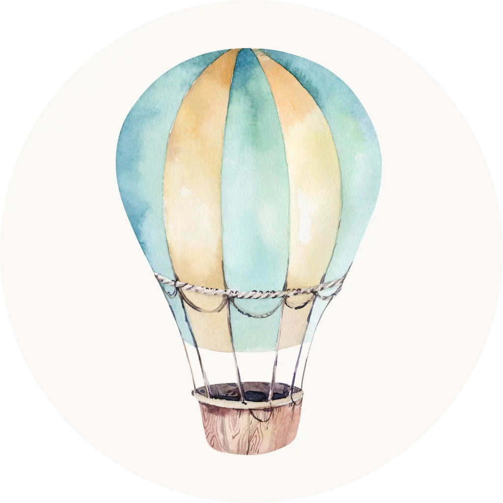 Een schattige sluitsticker voor het geboortekaartje van jouw kindje. De sticker heeft een gebroken witte achtergrond. Daarop zie je een watercolour luchtballon. Pas de sticker naar wens aan in onze online editor.