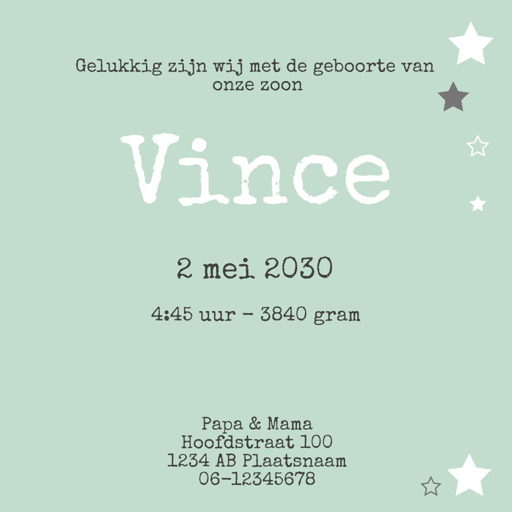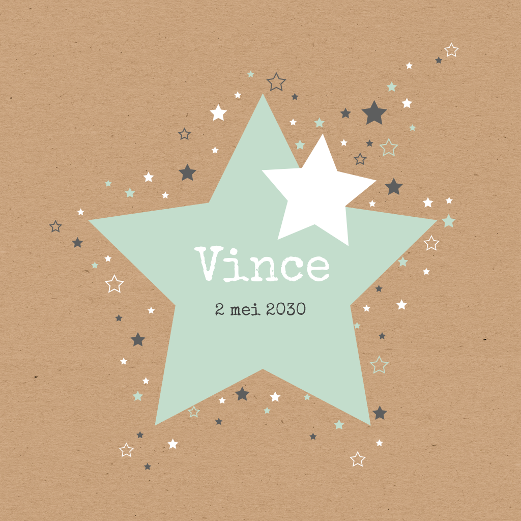 Mint en kraft gaan perfect samen, dat bewijst dit stoere geboortekaartje wel. Alle sterretjes en kleuren zijn aan te passen, waardoor je dit kaartje helemaal eigen kunt maken. Veel ontwerp plezier!