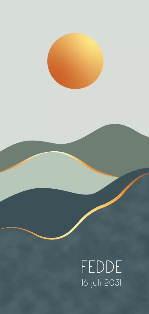 Stijlvol geboortekaartje voor een jongen met vlakken en goudlook. Met ronde hoeken.