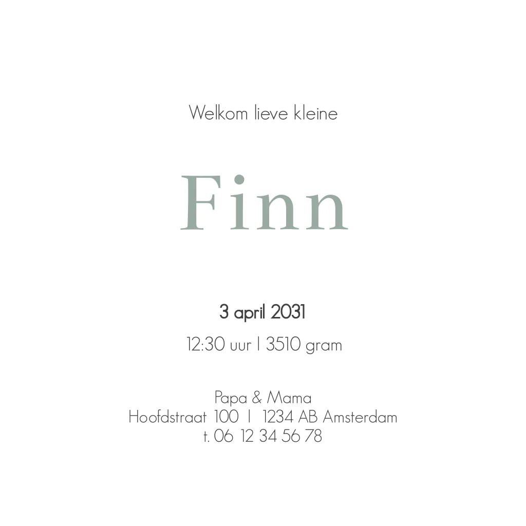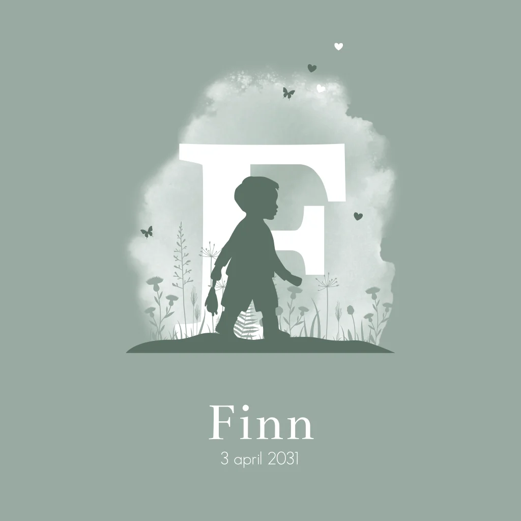Groen geboortekaartje met watercolour, silhouet en initiaal