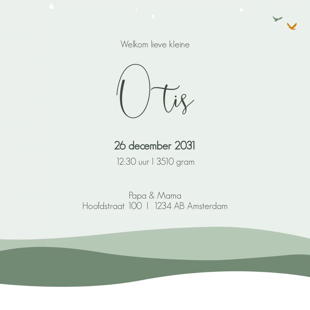 Dit is een mooi geboortekaartje voor jullie zoon. In een winters landschap zit een jongetje op een slee. Pas het kaartje aan in onze online editor, bestel een proefdruk om het kaartje in het echt te zien en bewonder het kaartje in het echt!