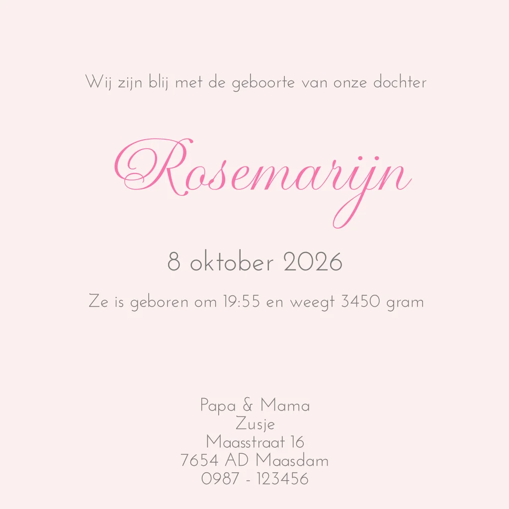 Het klassieke geboortekaartje is weer helemaal hip. Dit kaartje is chic met een moderne knipoog.