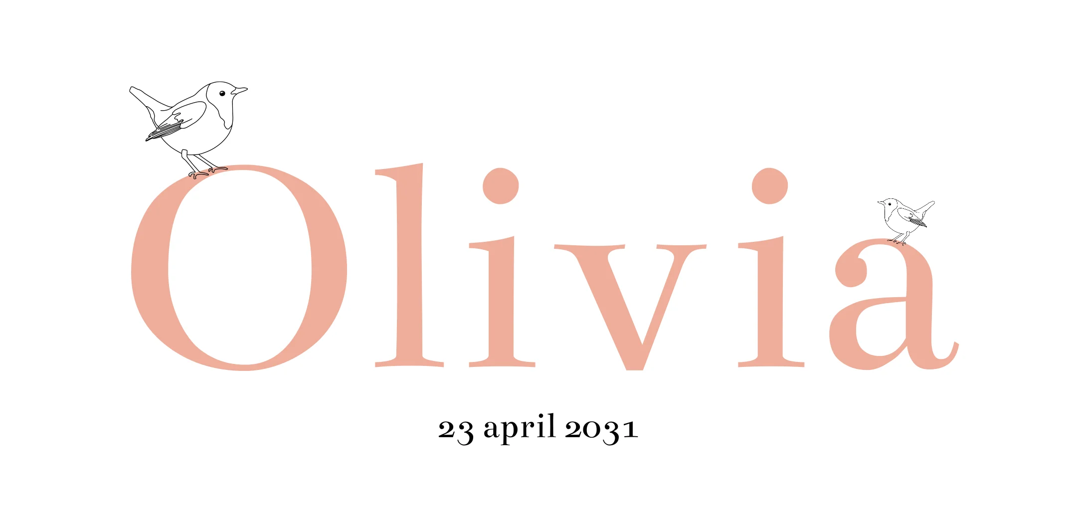 Panorama geboortekaartje voor een meisje met lijntekening van roodborstje. De achtergrond is wit, wat het kaartje een frisse uitstraling geeft.