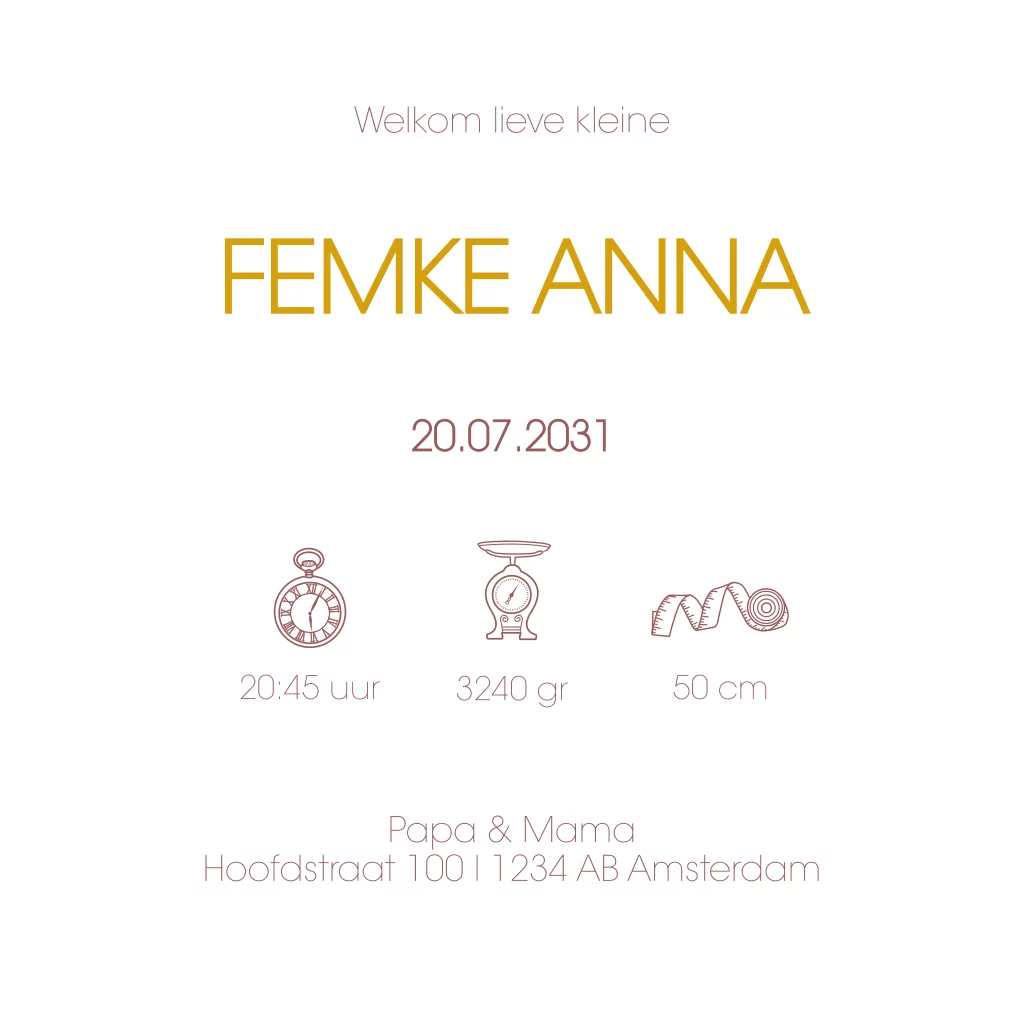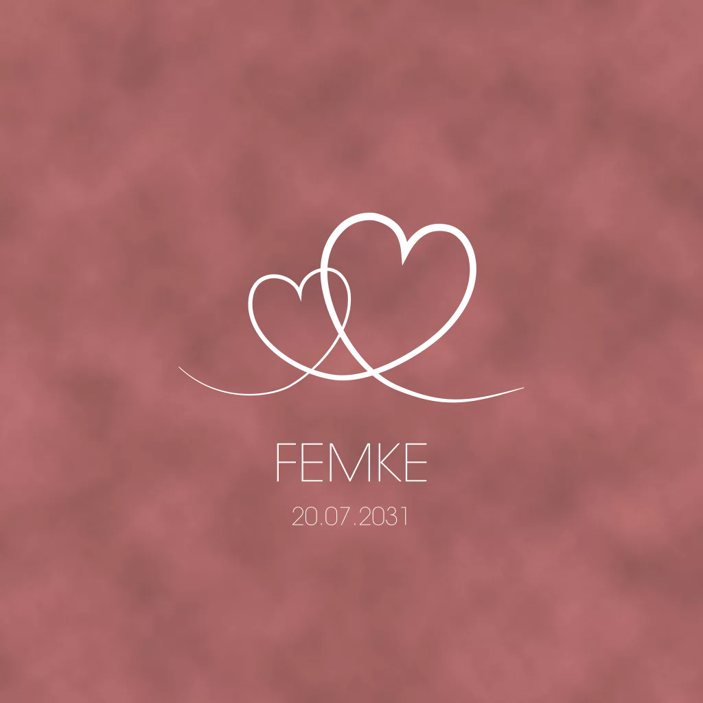 Eenvoudig velvet geboortekaartje met vrolijke harten in goudfolie