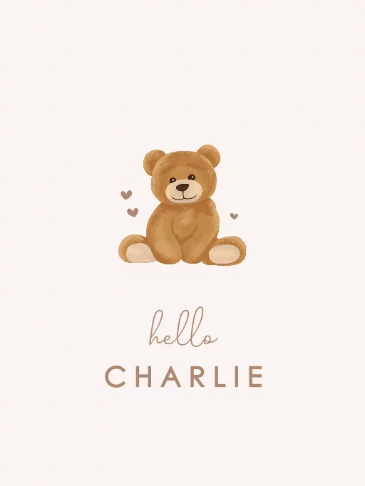 Een schattige canvasposter op met lieve teddybeer. De poster is volledig te personaliseren in onze online editor. Bij deze poster zitten magnetische houten latjes zodat je de poster mooi kan ophangen in de kinderkamer.