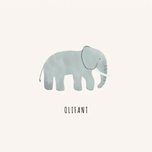 Een vierkante canvasposter voor op het kinderkamertje. De poster heeft een lieve illustratie van een olifant. De poster is volledig te personaliseren in onze online editor. Bij deze poster zitten magnetische houten latjes zodat je de poster mooi kan ophangen in de kinderkamer.