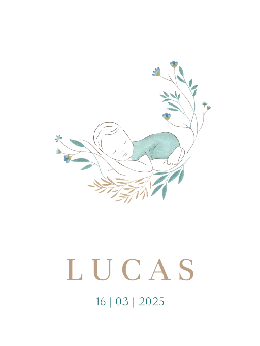Een toffe canvasposter met houten latjes voor op de kinderkamer. De poster heeft een lieve tekening van een jongen tussen de bloemen. Pas het ontwerp naar wens aan in onze online editor.