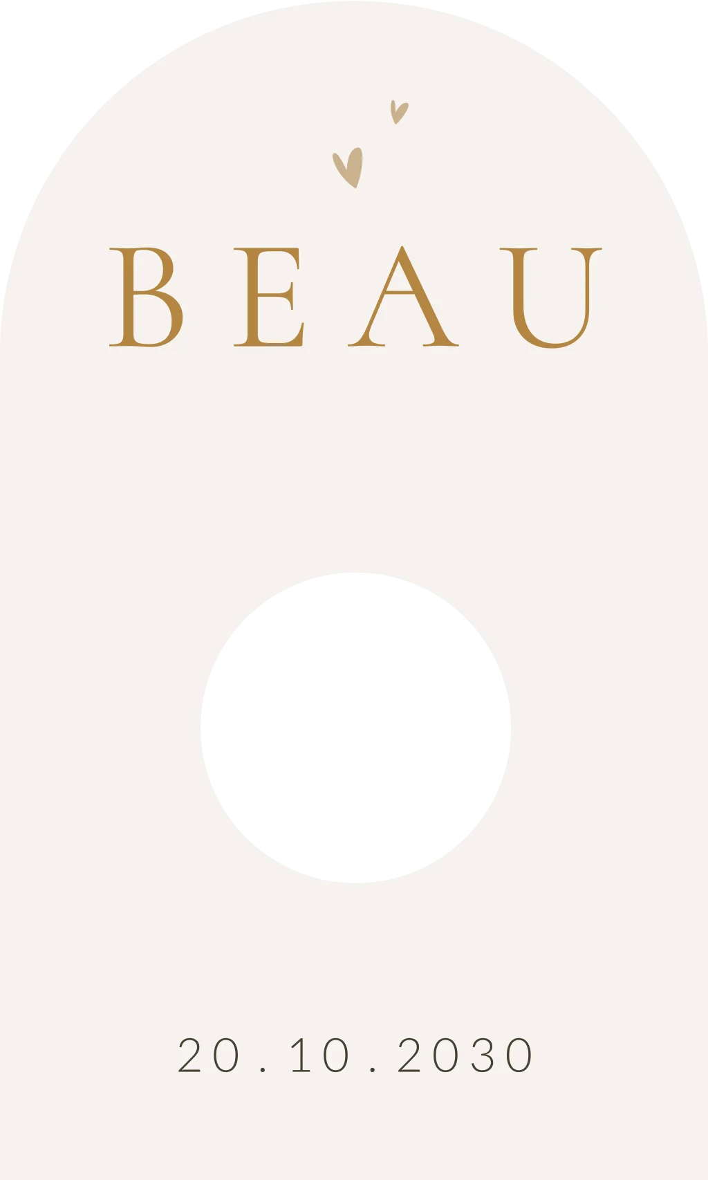 Dit boogkaartje is een toffe geboorte traktatie. Bedank vrienden en familie in de stijl van je geboortekaartje voor alle warme wensen en attenties. Het kaartje heeft een lichte achtergrond met de naam en hartjes in bruin. In het doorkijkje past een doopsuiker. Het boogkaartje is 6 cm breed en 20 cm lang.