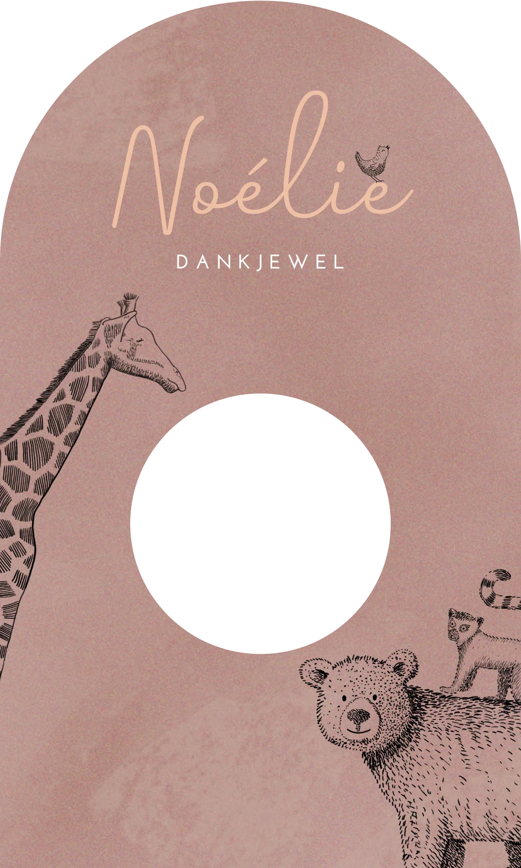 Dit boogkaartje is een lieve geboorte traktatie. Bedank vrienden en familie in de stijl van je geboortekaartje voor alle warme wensen en attenties. De kaartjes hebben een paarse achtergrond. Daarnaast zie je de naam met illustraties van dieren. Pas het ontwerp gemakkelijk aan in onze online editor. In het doorkijkje past een doopsuiker. Het boogkaartje is 6 cm breed en 20 cm lang.