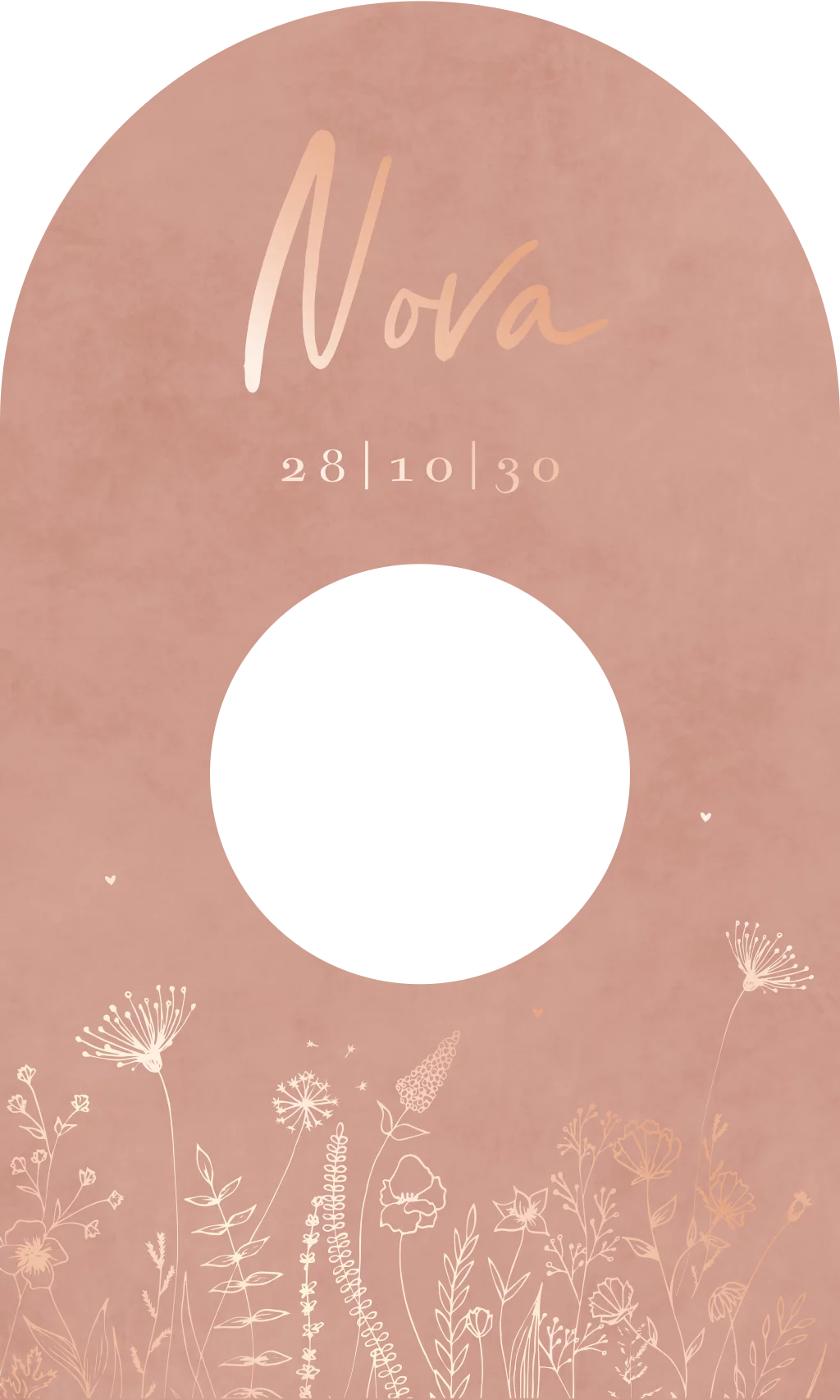 Dit boogkaartje is een lieve geboorte traktatie. Bedank vrienden en familie in de stijl van je geboortekaartje voor alle warme wensen en attenties. De kaartjes hebben een roze achtergrond. Daarnaast zie je de naam en bloemetjes gedrukt in roségoudfolie. Pas het ontwerp gemakkelijk aan in onze online editor. In het doorkijkje past een doopsuiker. Het boogkaartje is 6 cm breed en 20 cm lang.