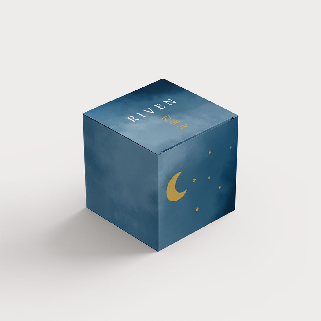 Doopsuikerdoosje blauw met goudfolie maantje