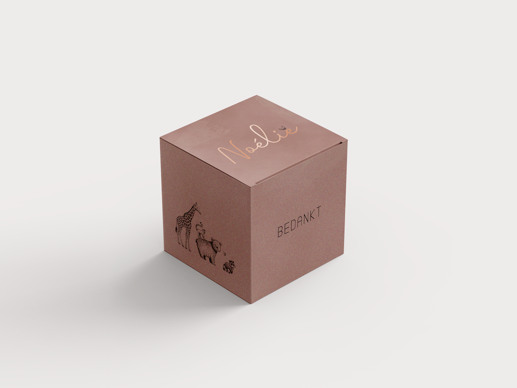 Dit vrolijke doopsuikerdoosje met oudroze velvet-look en hartjes. Een grappige rij dieren komt voorbij: wasbeer, beer, aap en giraffe lopen vrolijk achter elkaar. Dit is de pefecte geboorte traktatie. Bedank vrienden en familie in de stijl van je geboortekaartje voor alle warme wensen en attenties. Deze doosjes zijn 5 cm hoog, breed en diep én do-it-yourself: ze worden namelijk ongevouwen geleverd..