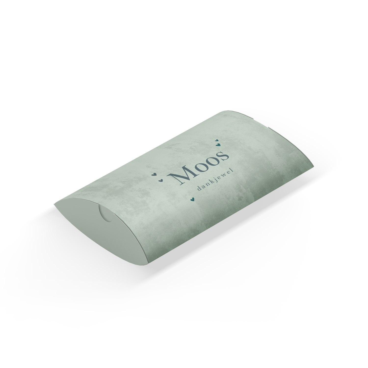 Een hip gondeldoosje als bedankje voor jouw gasten. Het doosje heeft een groene velvet-look achtergrond met daarop lieve hartjes. Pas het ontwerp naar wens aan in onze online editor.