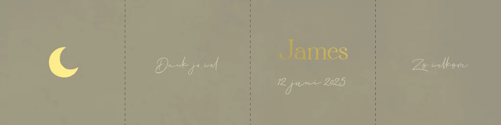 Een stijlvol en tijdloos doopsuikerdoosje voor jullie kleintje. Het doosje heeft een prachtige groene kleur met een lief goudfolie maantje. De doopsuikerdoosjes dien je nog zelf in elkaar te zetten. Pas het ontwerp naar wens aan in onze online editor.