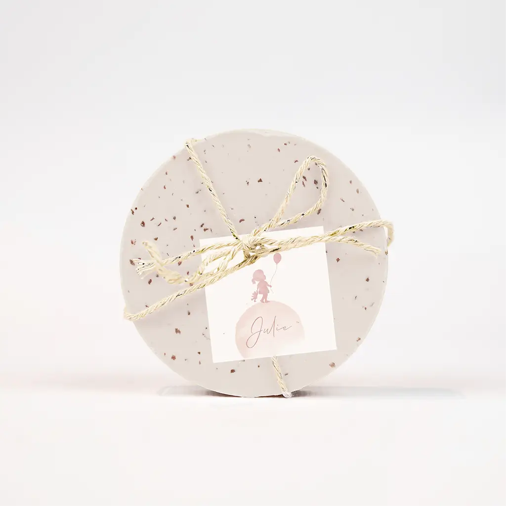 Het label kan je doormiddel van een lief lintje, touwtje, of paperclip bevestigen aan de doopsuiker. Deze kun je hier vinden. Let op: omdat je kunt kiezen uit verschillende bevestigingsmaterialen bestel je het bevestigingsmateriaal van jouw voorkeur los bij het product. Wanneer je de producten thuis krijgt, zet je ze hiermee zelf in elkaar.
