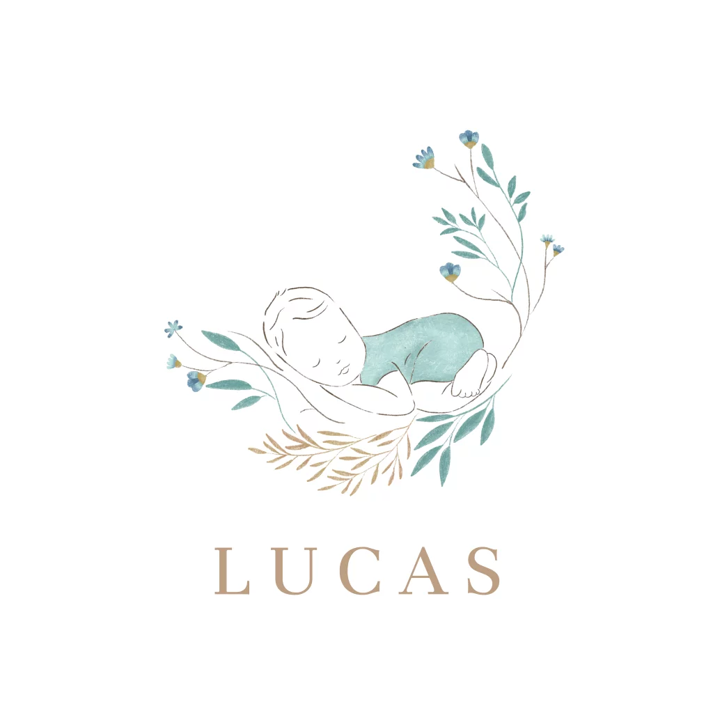 Een tof doopsuikerlabeltje voor aan de doopsuiker. Het labeltje heeft een lieve tekening van een jongen tussen de bloemen. Pas het ontwerp naar wens aan in onze online editor.