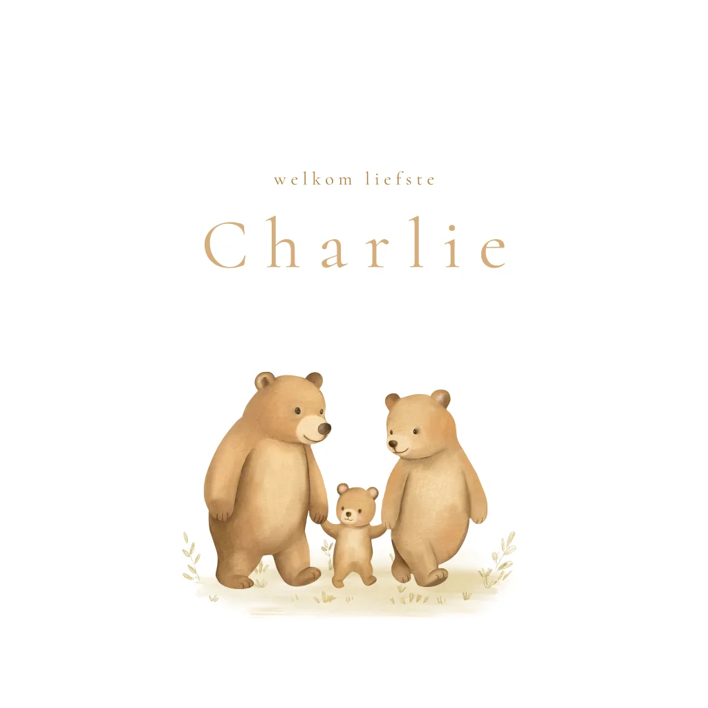Een lief doopsuiker labeltje bijpassend bij het geboortekaartje. Het labeltje heeft een lieve illustratie van een berenfamilie in het gras. Pas het ontwerp naar wens zelf aan.