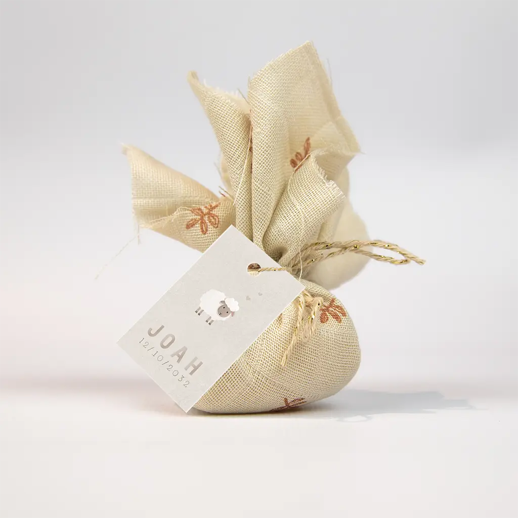 Leuk labeltje met een lief schaap en de naam van jullie kindje in hoogglans! Pas het labeltje aan in onze editor.