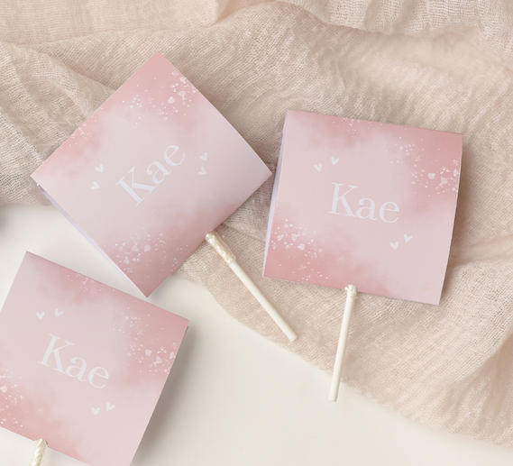 Wat een leuke doopsuiker verpakking! Dit lollyhoesje kan je zelf ontwerpen. Je kunt het hoesje personaliseren en vouwt het thuis gemakkelijk om een lolly heen.