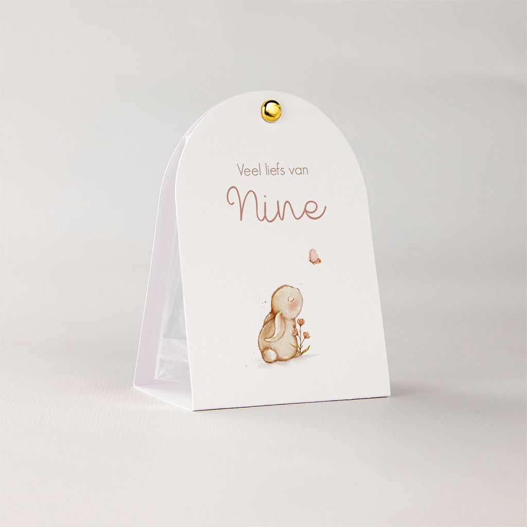 Doopsuiker snoepzakje met illustratie konijntje en vlinder