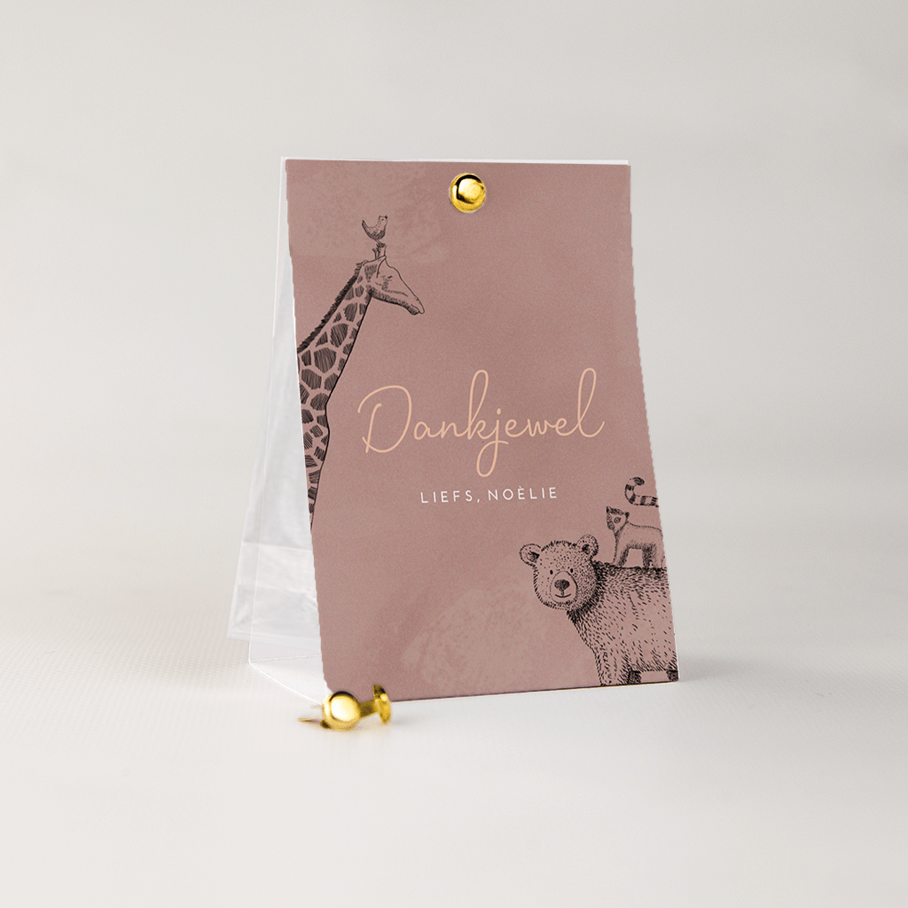 Dit vrolijke doopsuiker snoepzakje is perfect als geboortebedankje! Pas de buitenzijde naar wens aan in onze online editor. Bestel meteen de zakjes en splitpen mee, om de doopsuikers compleet te maken. Je hoeft enkel de snoepjes nog zelf uit te zoeken en het geheel in elkaar te zetten.
