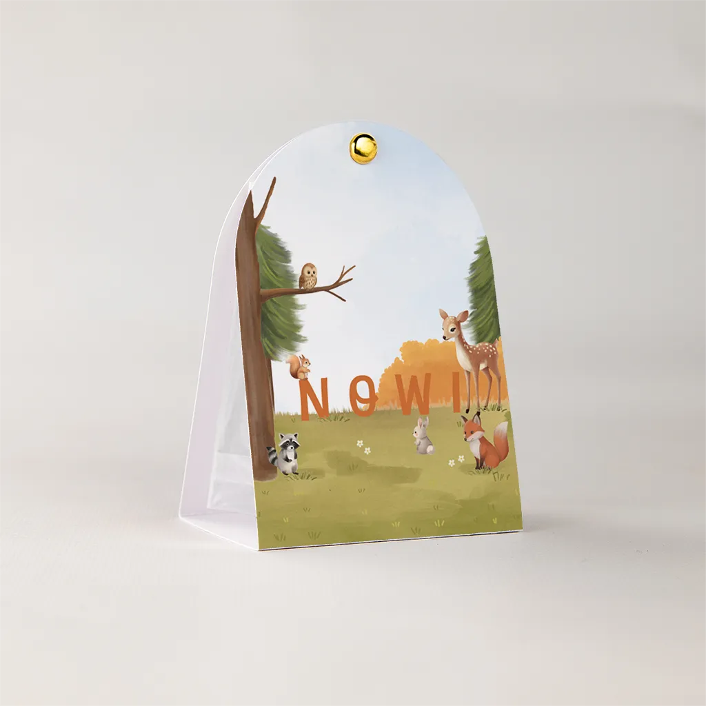 Dit doopsuiker snoepzakje met illustratie van dieren in het bos is perfect als geboortebedankje voor de geboorte van jouw kindje. Personaliseer de buitenzijde van het snoepzakje en bestel meteen de zakjes en splitpen mee, om de doopsuikers compleet te maken. Je hoeft enkel de snoepjes nog zelf uit te zoeken en het geheel in elkaar te zetten. Heerlijk klusje tijdens je verlof!