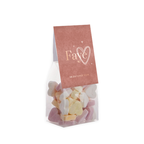 Dit vouwkaartje is een toffe geboorte traktatie. Bedank vrienden en familie in de stijl van je geboortekaartje voor alle warme wensen en attenties. Het kaartje heeft een rode velvet-look achtergrond met roségoudfolie voor een luxe uitstraling. Het vouwkaartje is 6 cm breed en 17 cm lang. Bestel meteen de zakjes mee, om de doopsuikers compleet te maken. Je hoeft enkel de snoepjes nog zelf uit te zoeken en het geheel in elkaar te zetten. Heerlijk klusje tijdens je verlof!