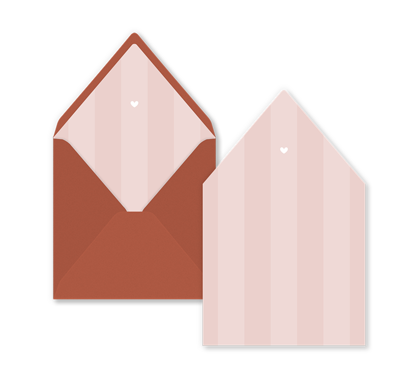 Een lieve envelop inlay die je zelf gemakkelijk in de envelop kan plakken. De inlay heeft een roze met lichtroze gestreept patroon. Pas de inlay naar wens aan in onze online editor.