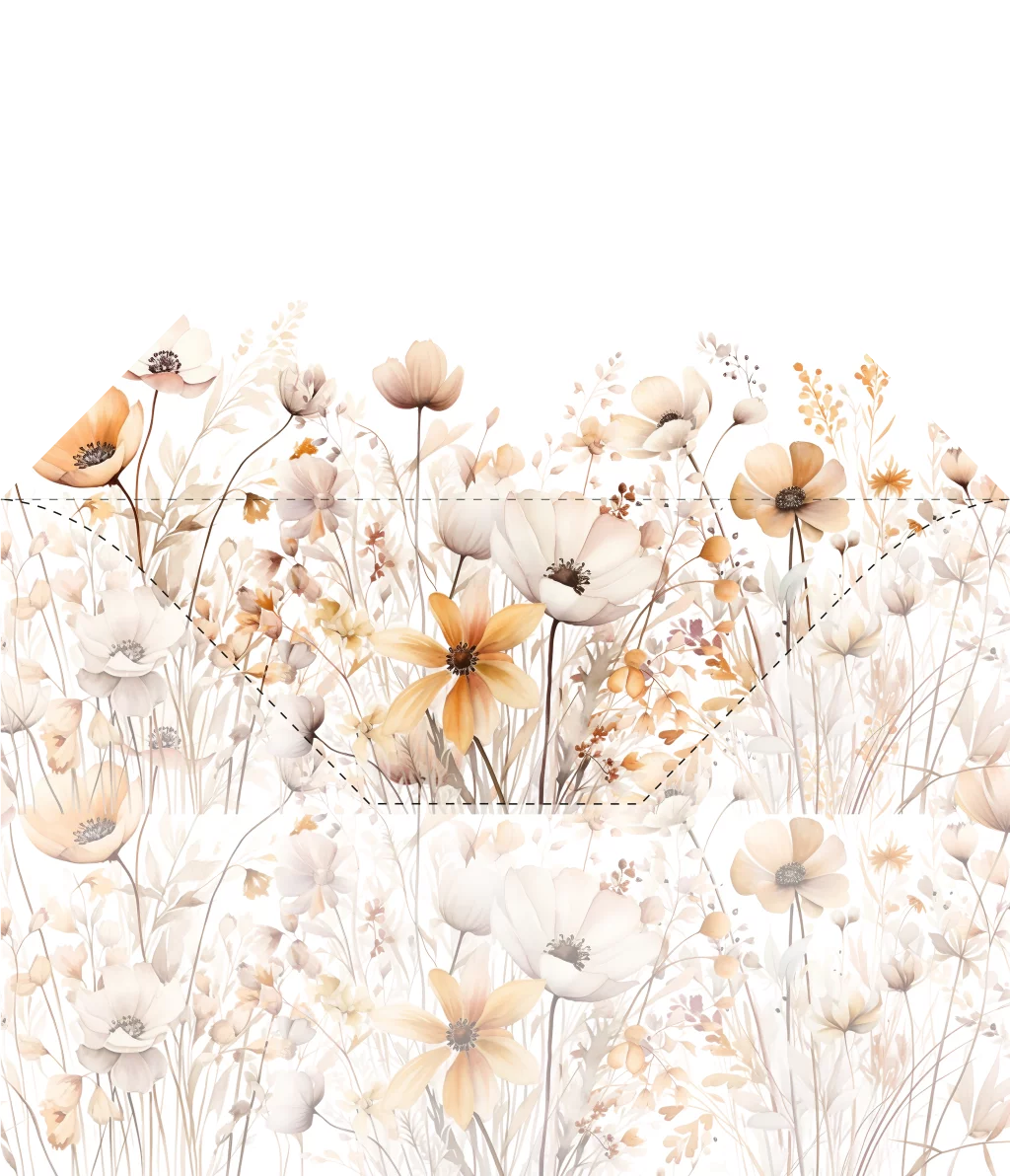 Stijlvolle enveloppen inlay voor jouw geboortekaartje. De inlay heeft een witte achtergrond met daarop illustraties van bloemen. De inlay is volledig naar wens te bewerken in onze online editor en gemakkelijk zelf te plakken.