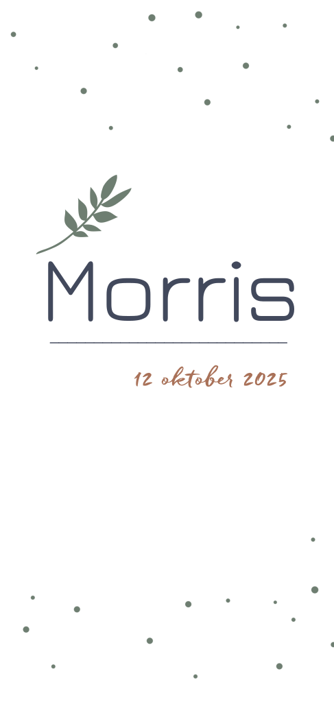 Stijlvol geboortekaartje met stippen en legergroen takje