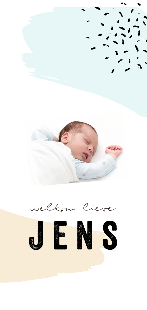 Geboortekaartje met blauwe en gele brush